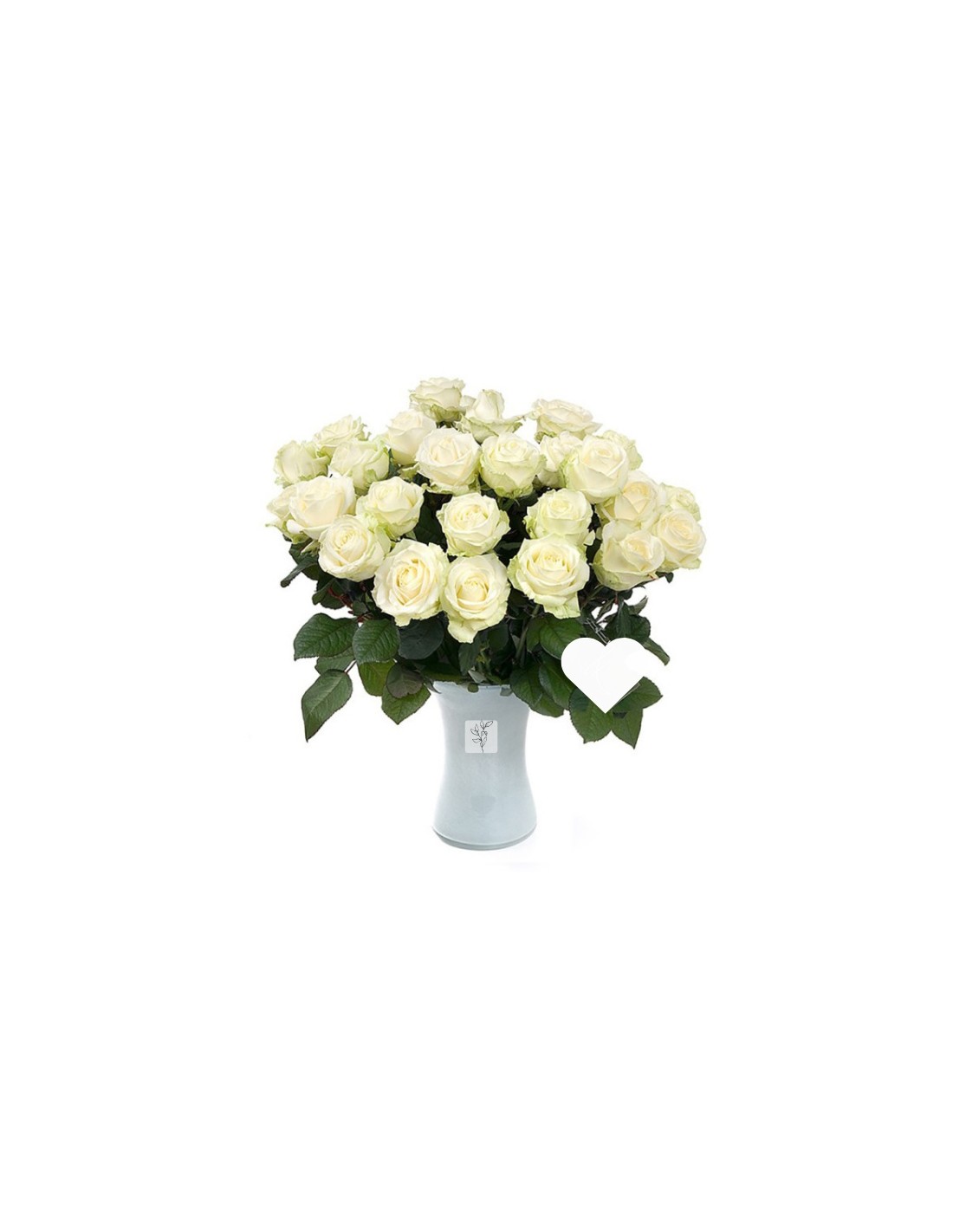 Timeless elegance: 24 white roses for an unforgettable gift. A classic that never disappoints, this bouquet of white roses, about 50 cm long, represents the essence of purity, love and timeless beauty. A symbol of refinement and simplicity, it is perfect for any occasion, from a birthday to an anniversary, from a graduation to a simple expression of affection. White roses, with their delicate petals and intoxicating scent, will add a touch of class and elegance to any setting.