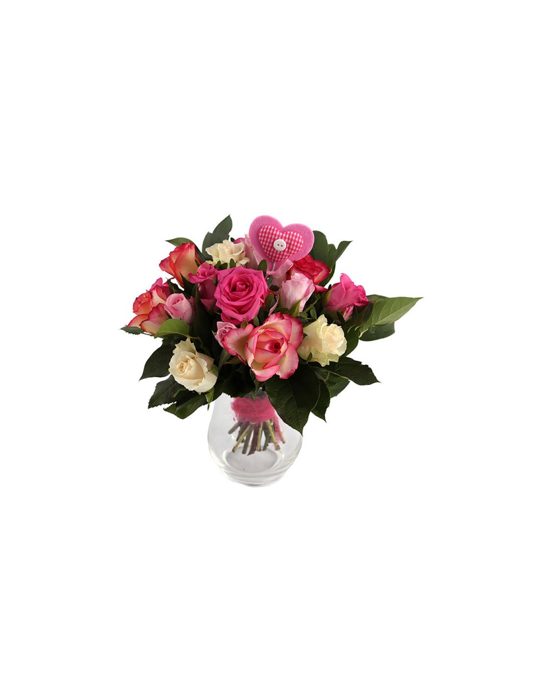 A delicate and refined floral tribute: a bouquet of white and pink roses, approx. 50 cm in length, with decorative greenery, this beautiful bouquet encapsulates the timeless beauty of white and pink roses, a symbol of love, purity and femininity. The flowers, selected with care and wisdom, are arranged harmoniously and complemented by decorative greenery that lends a touch of freshness and naturalness. Perfect for any occasion, this bouquet is an ideal gift to express your deepest feelings.