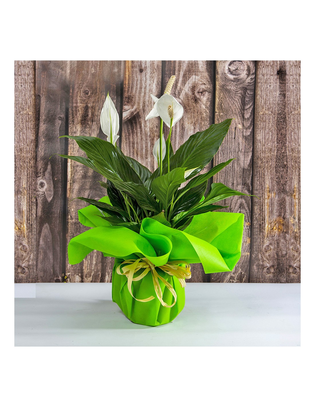 Spathiphyllum: Eleganza e purificazione dell'aria in un colpo solo! Dona un tocco di raffinatezza ai tuoi ambienti con questa splendida Spathiphyllum, una pianta d'appartamento alta circa 60 cm che si distingue per i suoi eleganti fiori bianchi. Oltre al suo aspetto incantevole, lo Spathiphyllum è noto per la sua capacità di purificare l'aria, rimuovendo sostanze nocive come formaldeide e benzene. Perfetta per qualsiasi ambiente, questa pianta è ideale come regalo per gli amanti della natura e del design. Non lasciarti sfuggire l'occasione di regalare un tocco di bellezza e benessere!